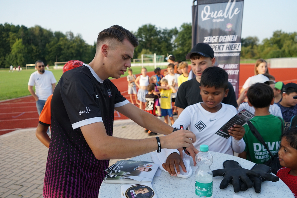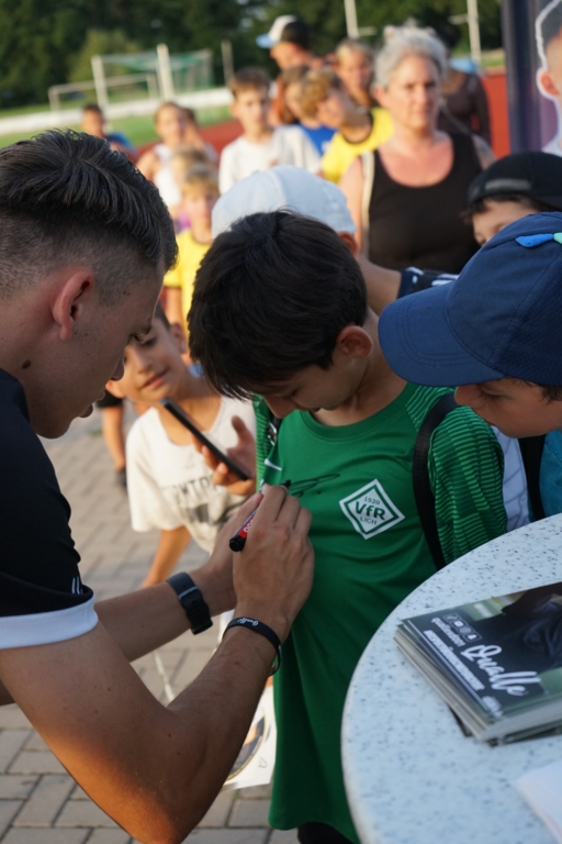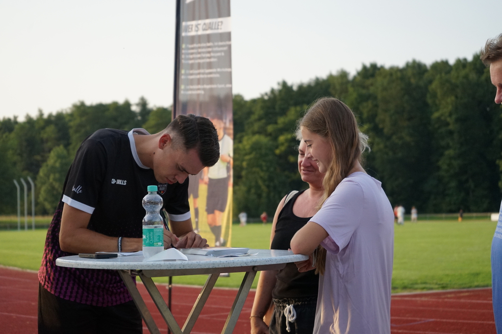 Um 18 Uhr übernahm Qualle selbst die Pfeife beim Freundschaftsspiel zwischen der Licher C-Jugend und dem SV Altenburg. Dabei zeigte er anschaulich, wie Regeln, Kommunikation und Fingerspitzengefühl auf dem Platz ineinandergreifen können. Im Anschluss folgte eine Autogrammstunde, bei der Fans die Gelegenheit hatten, Fotos zu machen, Unterschriften abzuholen und Merchandising-Artikel zu erwerben.