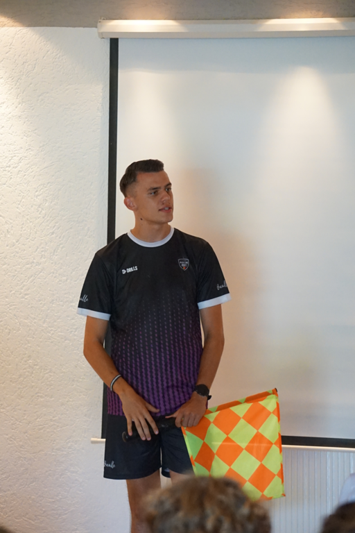 Der Nachmittag begann, mit kleiner Verspätung, um 17 Uhr mit einem exklusiven Workshop, bei dem Qualle auf seine gewohnt lockere und humorvolle Art das Schiedsrichterwesen näherbrachte. Neben Anekdoten vom Spielfeld und praktischen Tipps gewährte er den Teilnehmenden auch sehr persönliche Einblicke in sein früheres Privatleben. Offen sprach er darüber, wie ihn seine Erfahrungen geprägt haben und warum Respekt und Fairness für ihn heute im Mittelpunkt stehen. So bot der Workshop für Kinder, Jugendliche und Erwachsene gleichermaßen spannende und unterhaltsame Einblicke, nicht nur sportlich, sondern auch hinter die Kulissen des Lebens von Qualle, der mit bürgerlichem Namen Pascal Martin heißt.